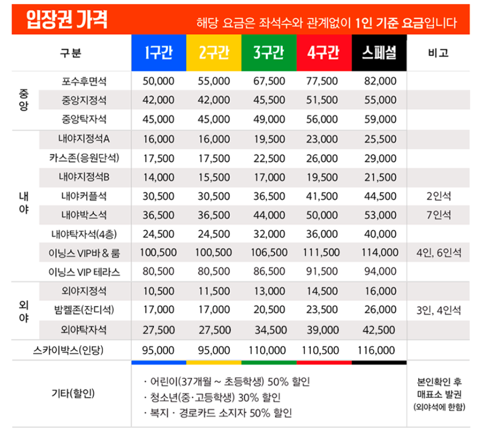 좌석 하나 잘 고르면 경기력이 200% 더 재미있어집니다.