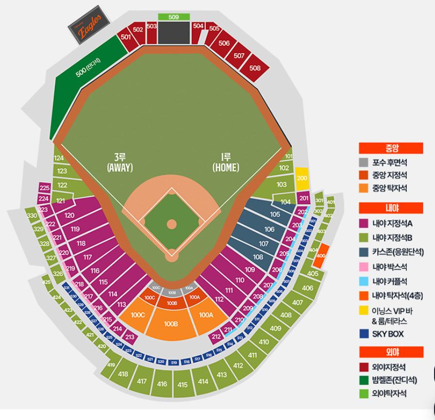 한화이글스파크 직관 요즘 정말 핫한데요. 야구와 감성이 공존하는 놀이터입니다. 신구장의 좌석배치, 예약방법, 내야 지정석, 외야지정석 등 인기가 많은 중앙탁자석 까지 정보 알아보았습니